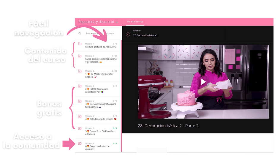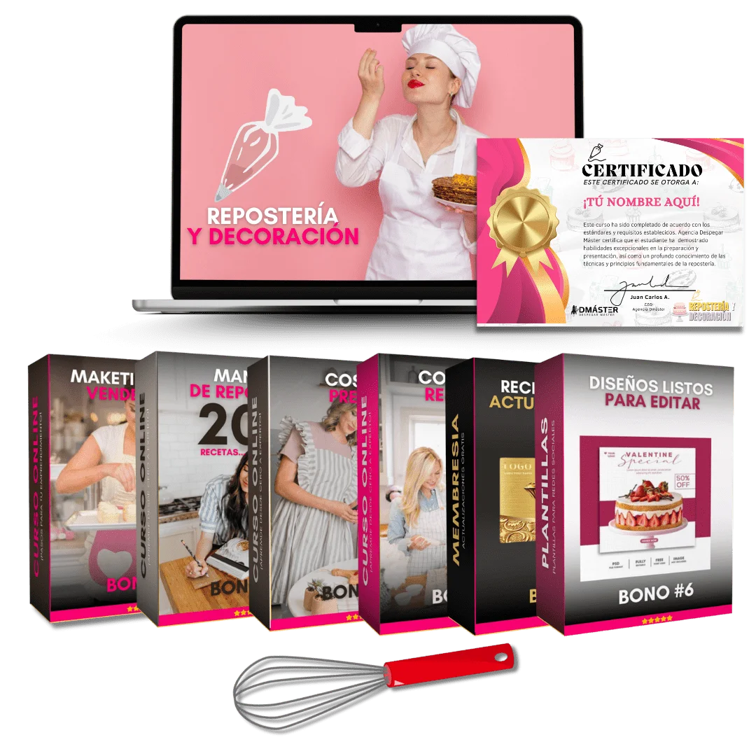 Este bono es exclusivo para los alumnos de nuestro curso online de repostería. Al inscribirte tendrás acceso a recetas exclusivas, sesiones de preguntas y respuestas en vivo, y actualizaciones sobre las últimas tendencias.